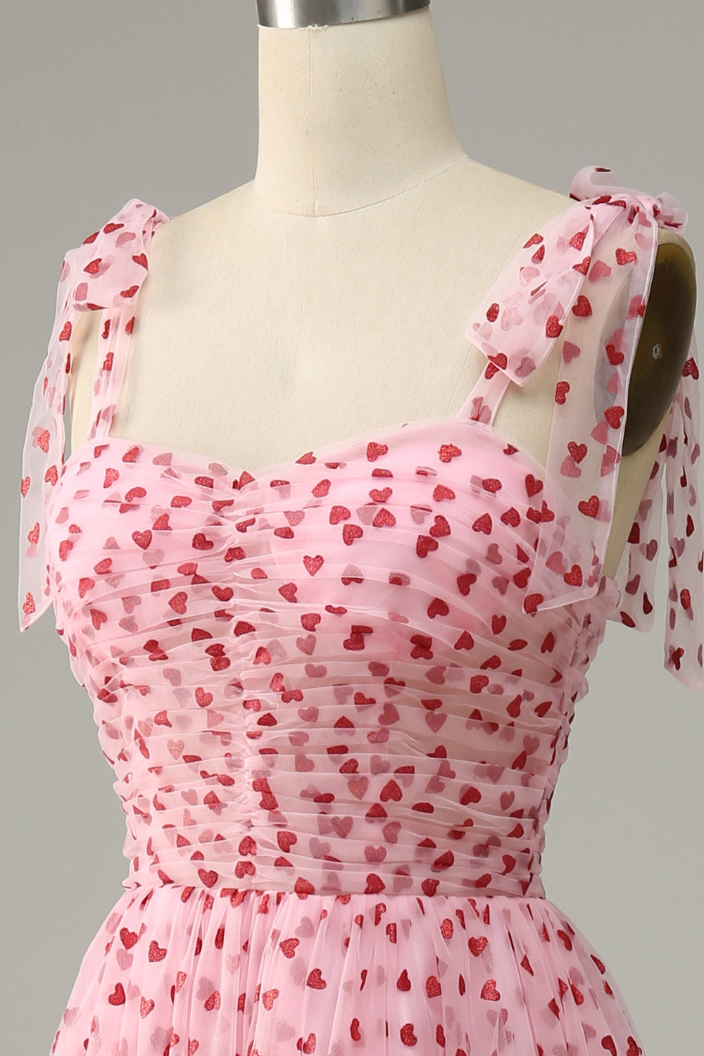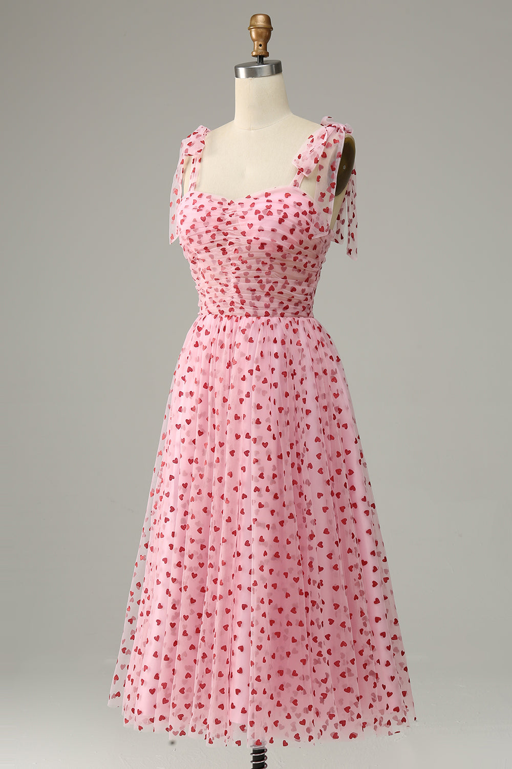 Pink Tulle A-line Midi Prom kjole med hjerter