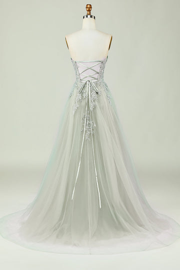 Sweetheart Beaded Light Green Long Prom Dress med Slit Front