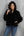 Svart fluffy rund hals fuskepels lange ermer frakk