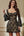 Svart firkantet hals korsett rynket ryggløs kort cocktailkjole med lange ermer
