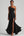 Svart bodycon rund hals lange ermer festkjole i fløyel
