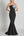 Svart havfrue plissert ryggløs lang brudepikekjole