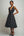 Svart Hvit A-linje V-hals Polka Dots Kjole med Bånd