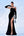 Svart sølv slire V-hals lange ermer lang formell kjole med splitt
