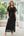 Svart V-hals korte ermer A-linje Midi 1950-tallet kjole med belte