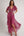 Utsmykket mørk rosa V-hals A Line Floral Maxi formell kjole med volanger