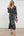 V NECK Svart blomstertrykt kjole fra 1950-tallet med belte