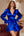 V-hals Royal Blue kort hjemkomstkjole lange ermer