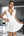 En linje jakkeslag hvit svart prikket kjole med puffermer