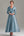 En linje grå blå V-hals Kjole til brudens mor med lange ermer