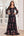 En linje lange ermer blomstertrykk svart lang ballkjole