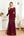 Glitrende burgunder V-hals ballkjole med lange ermer