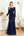 Glitrende blekkblå applikasjoner perler lange ermer rund hals kjole til brudens mor