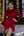 Glitrende rød langermet blonder rynket cocktailkjole med sløyfe