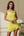 Gul kjæreste rynket høysplittet slire brudepikekjole med slips tilbake