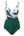 Av skulderen mørkegrønn lagdelt ballkjole med volanger