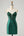 Mørkegrønn dyp V-halsapplikasjon sateng mini hjemkomstkjole