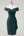 Mørkegrønn slire V-hals rynket høy-lav brudepikekjole med splitt