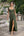 Oliven havfrue blomsterprint spaghetti stropper lang ballkjole med spalt