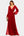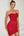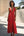 Rød rynket slire formell kjole med splitt
