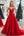 Rød prinsesse dyp-V-hals tyll lagdelt lang ballkjole med perler