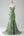 Grønn A-linje spaghetti stropper trykt plissert lang ball kjole med spalt