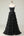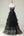 Svart A-linje stroppeløs lagdelt volang med prikker lang ballkjole med splitt