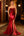 Burgunderrød havfrue-stroppeløs paljettkjole med langballkjole og perlekanter
