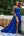 spaghetti stropper marineblå lang ballkjole med stjerne