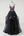 Svart A-linje Spaghetti Stropper Blomster Ruffles Tyll Lang Ballkjole med Splitt