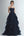 Organza Navy lagdelt stroppeløs A-linje formell kjole