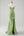 A-line spaghetti stropper grønt trykt lang ballkjole med spalt