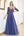 Prinsesse A Line V Neck Blue Long Prom Kjole med Ruffles Slit
