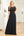 Glitter Svart korsett Spaghetti stropper Lang formell kjole med volanger
