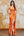 Oransje havfrue spaghetti stropper lang korsett ballkjole med spalt