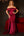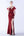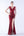 Firkantet hals rødt korsett formell kjole med lange ermer