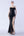 Svarte spaghetti stropper V-hals ryggløs frynset paljettkjole med spalt