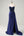 marineblå havfrue spaghetti stropper rynket streamer lang ballkjole med blonder
