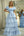 Hvit blå blomst En linjelang ballkjole med rufsete ermer