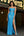 Glitrende blå havfrue V-hals lang ballkjole med spalt