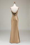 Støvete blå skjede Spaghetti stropper Satin Long brudepike kjole