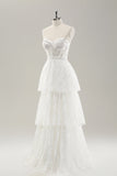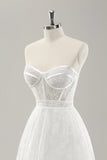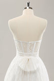 Hvit stroppeløs korsett lagdelt lang brudekjole