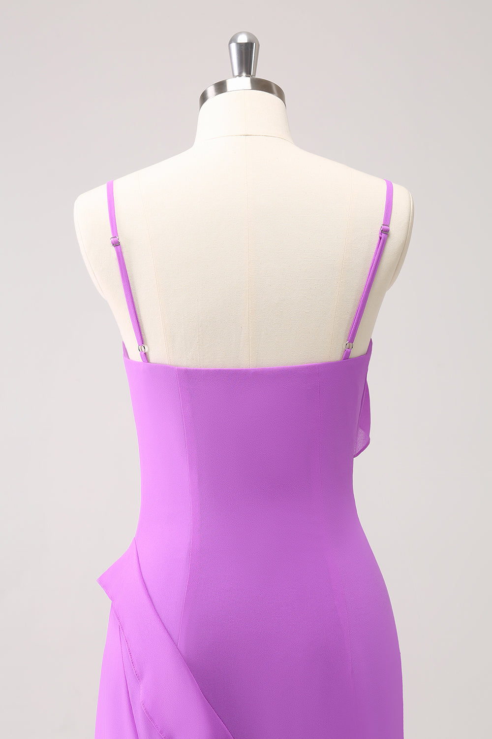 Tahiti Ruffle Spaghetti Stropper Chiffon Lang Brudepike Kjole Med Splitt