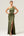 Olivengrønn plissert sateng brudepikekjole med splitt
