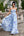 Glitrende V-hals plissert lyseblå lang brudepikekjole med broderi