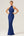 mørkeblå glitrende vri foran havfrue bryllupsgjest kjole med splitt
