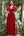 En linje V hals mørk rød pluss størrelse ballkjole med delt front