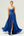 Blå asymmetrisk hals sateng brudepikekjole med splitt