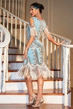 Grønn frynset Sequined Gatsby kjole med tilbehør sett