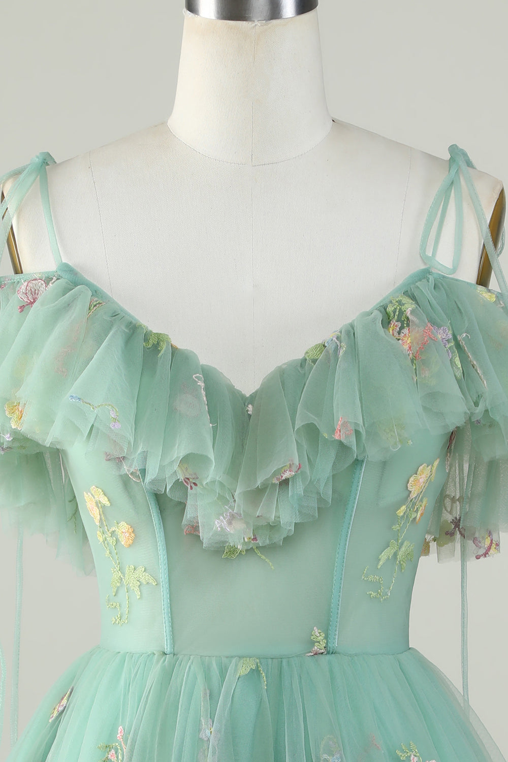 Lavendel av skulderen Korsett Homecoming kjole med volanger